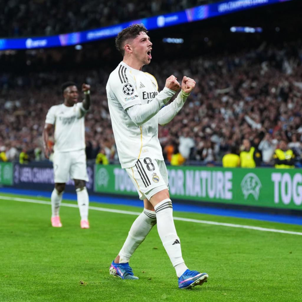 Každý z troch gólov mal svoju vlastnú hodnotu. Prvý prišiel po dlhom odkopeThibauta Courtoisa — Valverde predčil brániacich hráčov, obehol brankára Donnarummu a chladnokrvne zakončil. Druhý dal ľavou — slabšou — nohou po prihrávke Viníciusa Jr. A tretí bol azda najkrajší: po kombinácii s Díazom loboval Rúbena Diasa a dokončil akciu volejom.